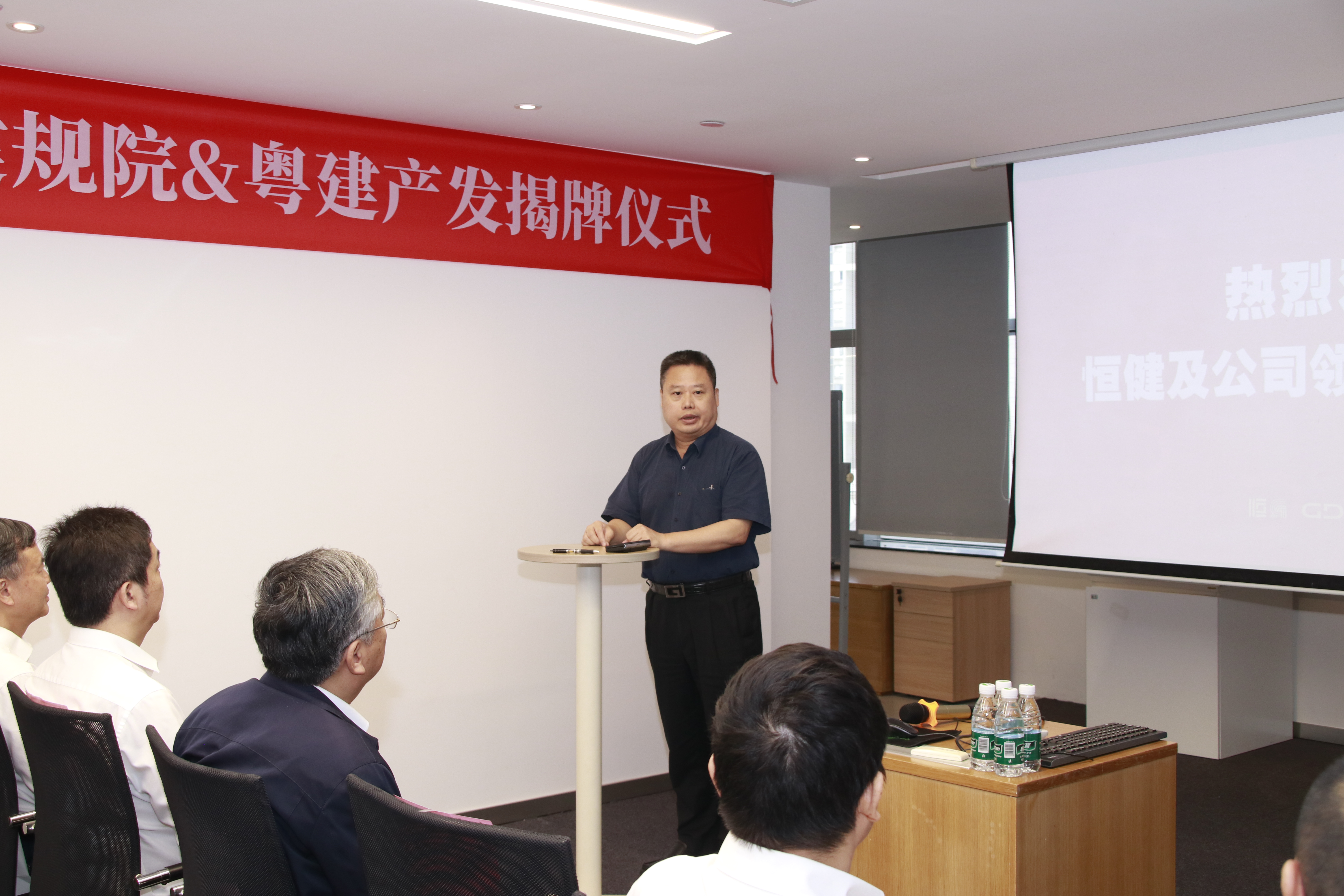恒健控股公司黨委委員、副總經(jīng)理李一鳴對粵建規(guī)院、粵建產(chǎn)發(fā)順利揭牌表示熱烈的祝賀,他表示,粵建規(guī)院是省建院與政府部門、投資機(jī)構(gòu)聯(lián)系最緊密的部門之一,鏈接各方資源優(yōu)勢顯著,希望粵建規(guī)院與粵建產(chǎn)發(fā)以此為契機(jī),更加積極主動融入恒健控股公司發(fā)展大局,進(jìn)一步助力恒健控股公司提升資源整合和配置能力。