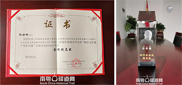 省“三師”專業(yè)志愿者郭壯獅、張子健《以線性文化遺產(chǎn)保育活化帶動沿線村莊社會經(jīng)濟(jì)發(fā)展——淺談廣東省南粵古驛道保護(hù)利用工作》一文榮獲第九屆錢學(xué)森城市學(xué)“城市文化遺產(chǎn)保護(hù)”金獎提名獎。