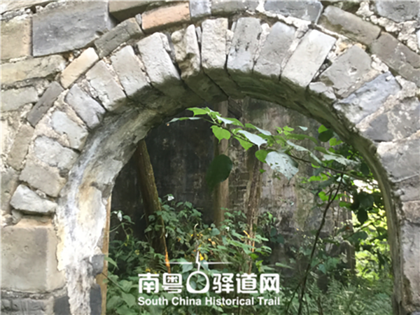 韶關(guān)坪石新村建筑工程系辦事處遺址的拱門。