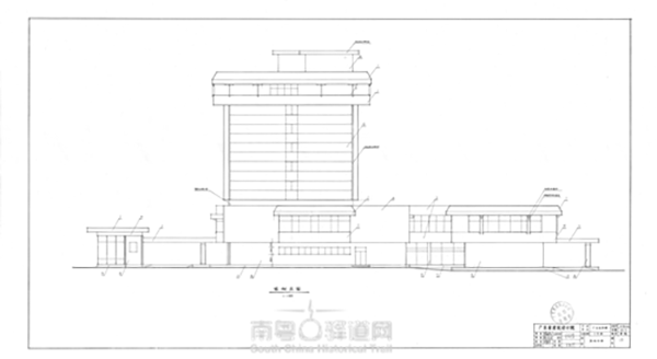 廣東迎賓館3號(hào)樓(白云樓)建筑的南向立面圖,廣東省建筑設(shè)計(jì)研究院提供。