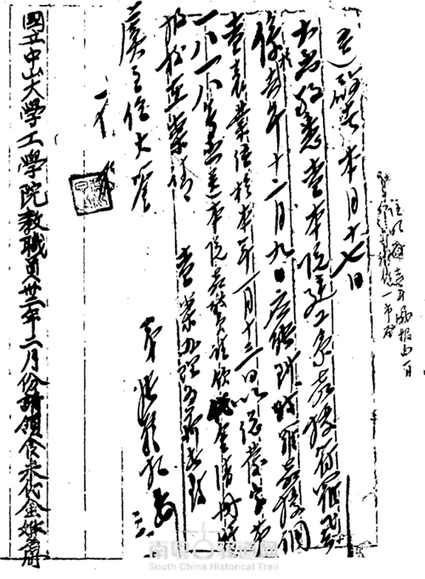 著名畫家符羅飛到任中山大學(xué)的時(shí)間為1942年12月,因工學(xué)院漏報(bào),需重新出具證明,從1月份起每月補(bǔ)十市斗。
