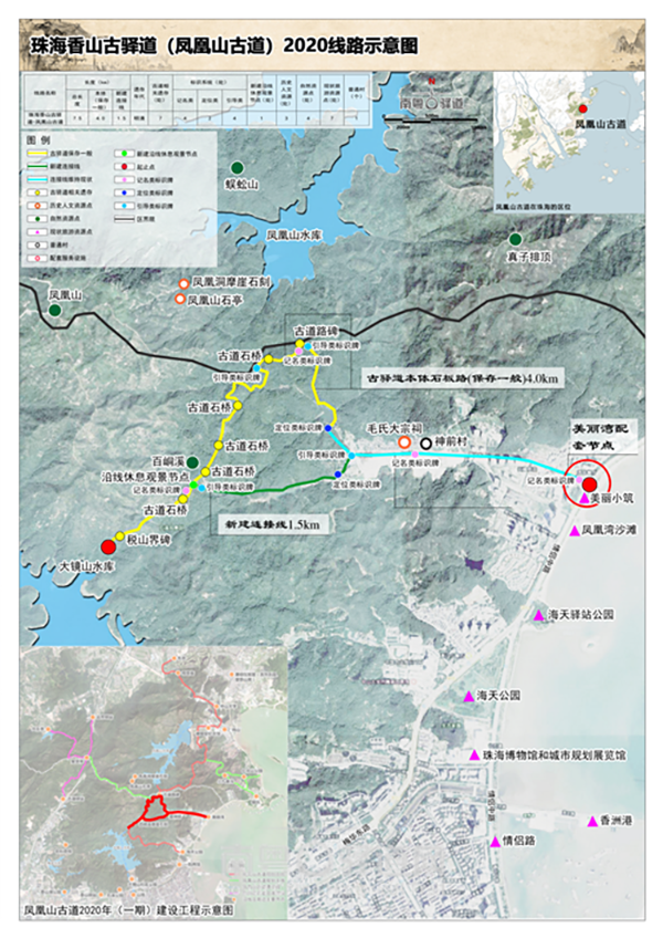 2020年4月印發(fā)的《珠海市2020年度古驛道工作方案》中明確提出,香洲區(qū)、高新區(qū)要開展5公里鳳凰山古道本體修復及8.5公里鳳凰山古道連接線建設,萬山區(qū)應開展東澳海關古道遺跡保護利用提升工程,還原古道本體風貌,加強遺址保護展示。